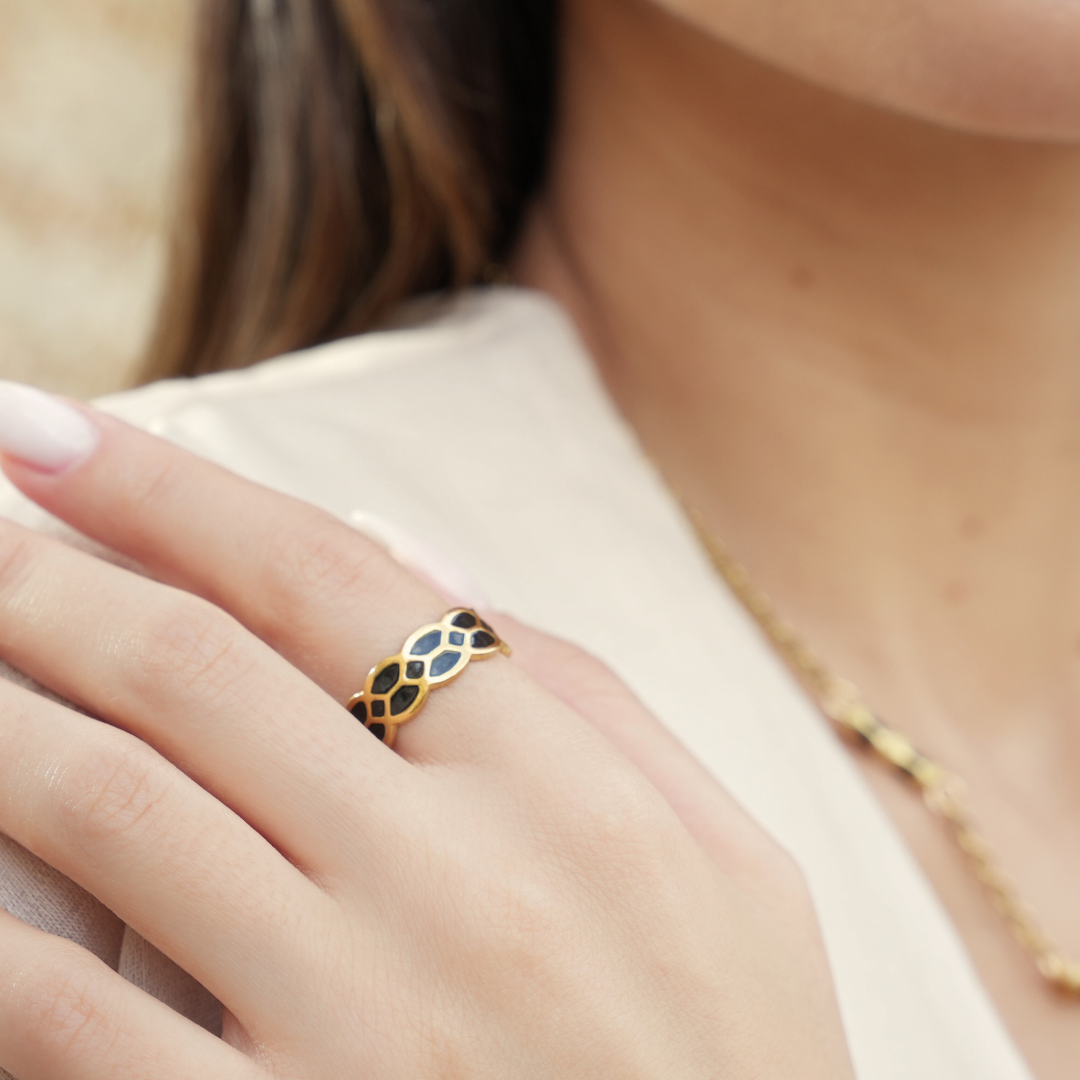 Traditional Damascene work is defined by gold set against a darkened surface, creating contrast through restraint rather than excess. This piece draws from that visual language — the depth of black, the clarity of gold, and the balance between the two.