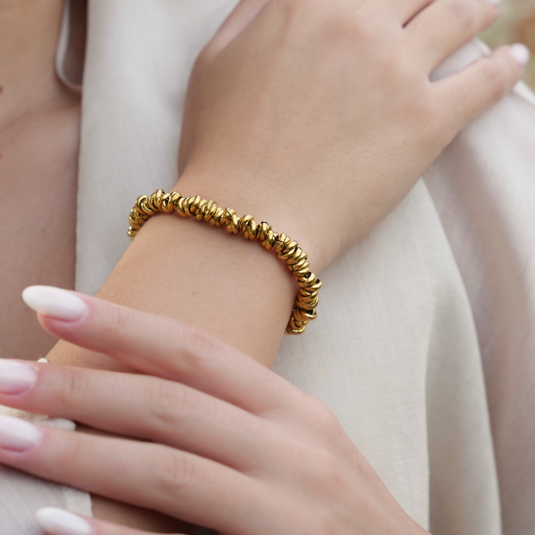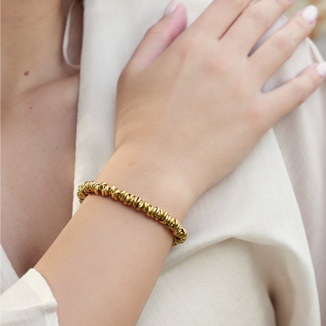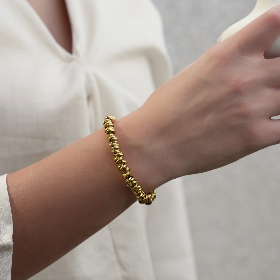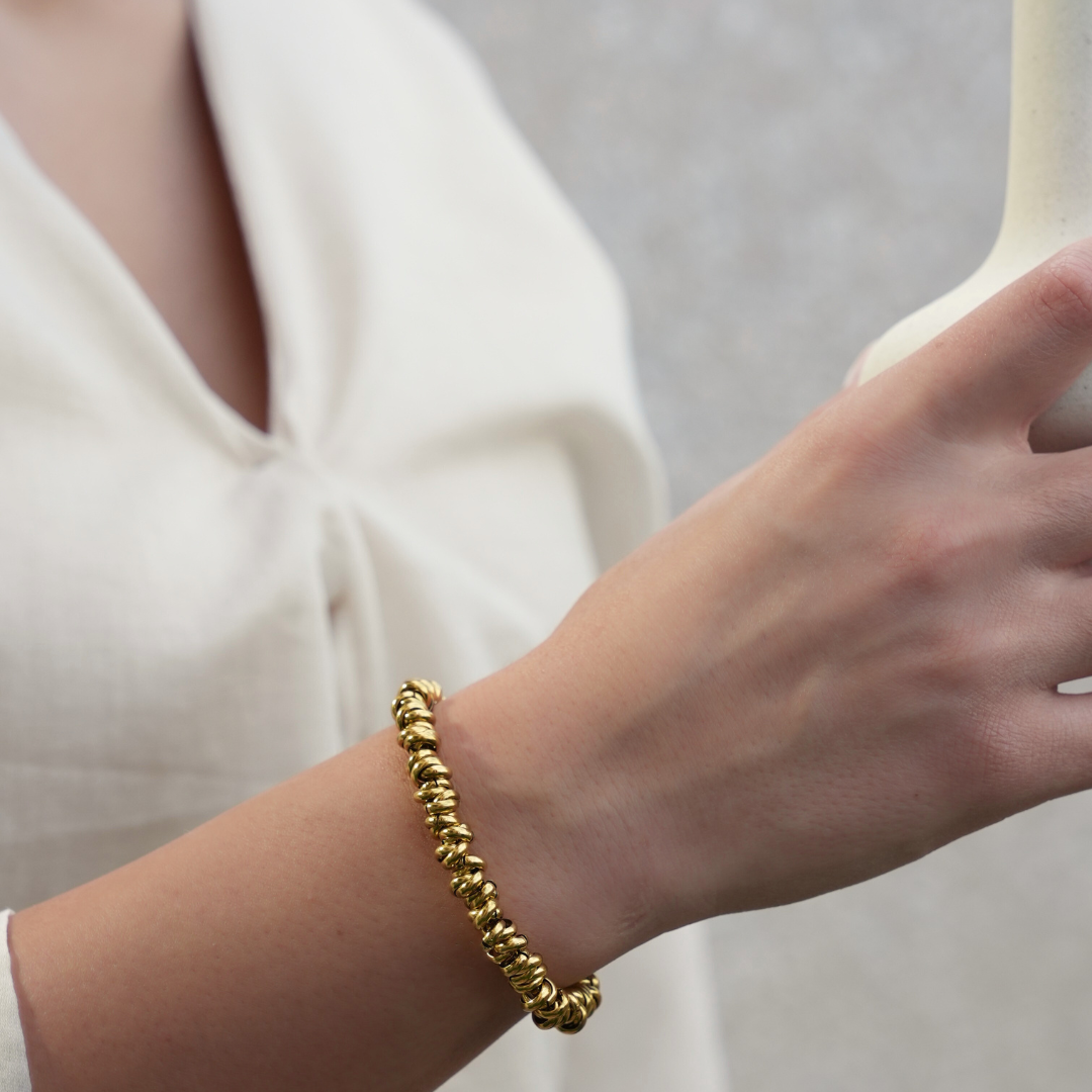 The repeating coils of Liwa directly reference this heritage. Each twist echoes the craft of traditional coiled goldwork, while the bracelet’s form recalls bound cords and banners once associated with leadership in Old Arabia. The result is a bold, sculptural piece rooted in history, not decoration.